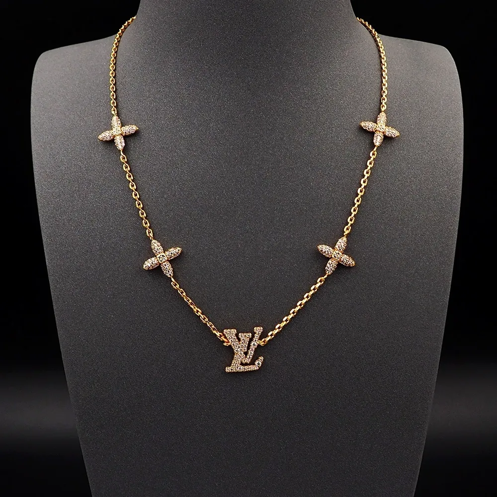 עיצוב: שרשרת עדינה עם פרחי מונוגרם ולוגו LV משובץ