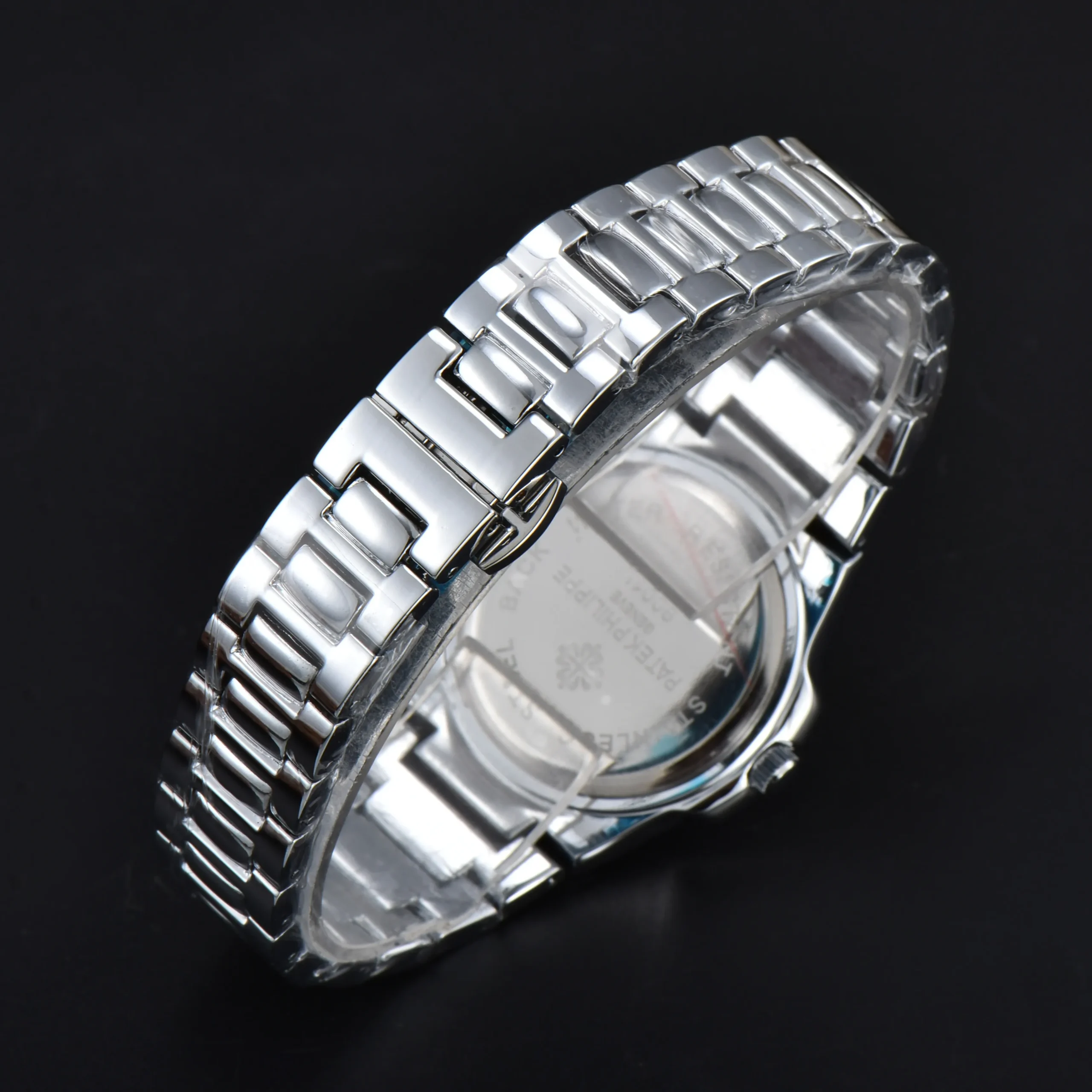 רצועה: מתכת כסופה מבריקה בעיצוב יוקרתי.