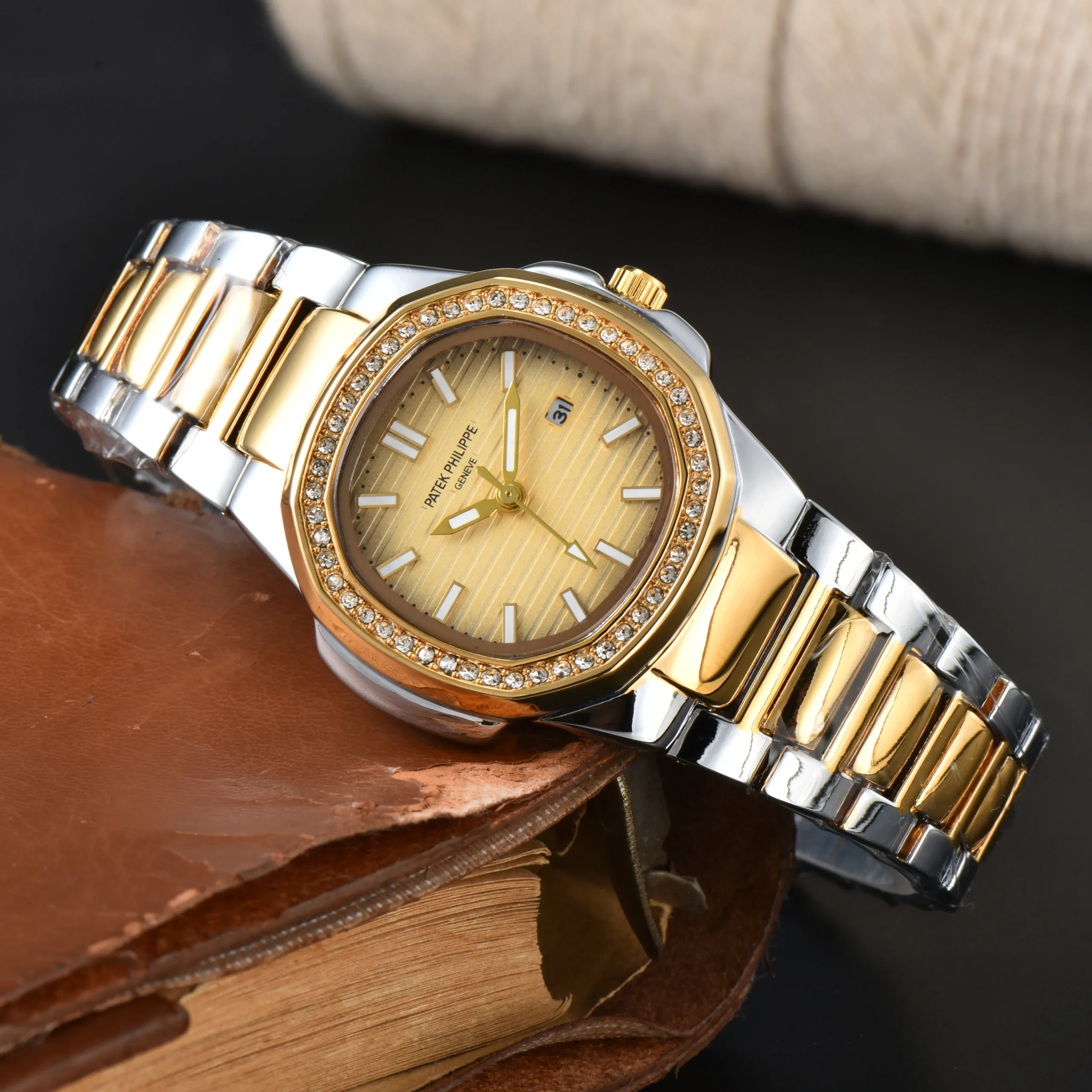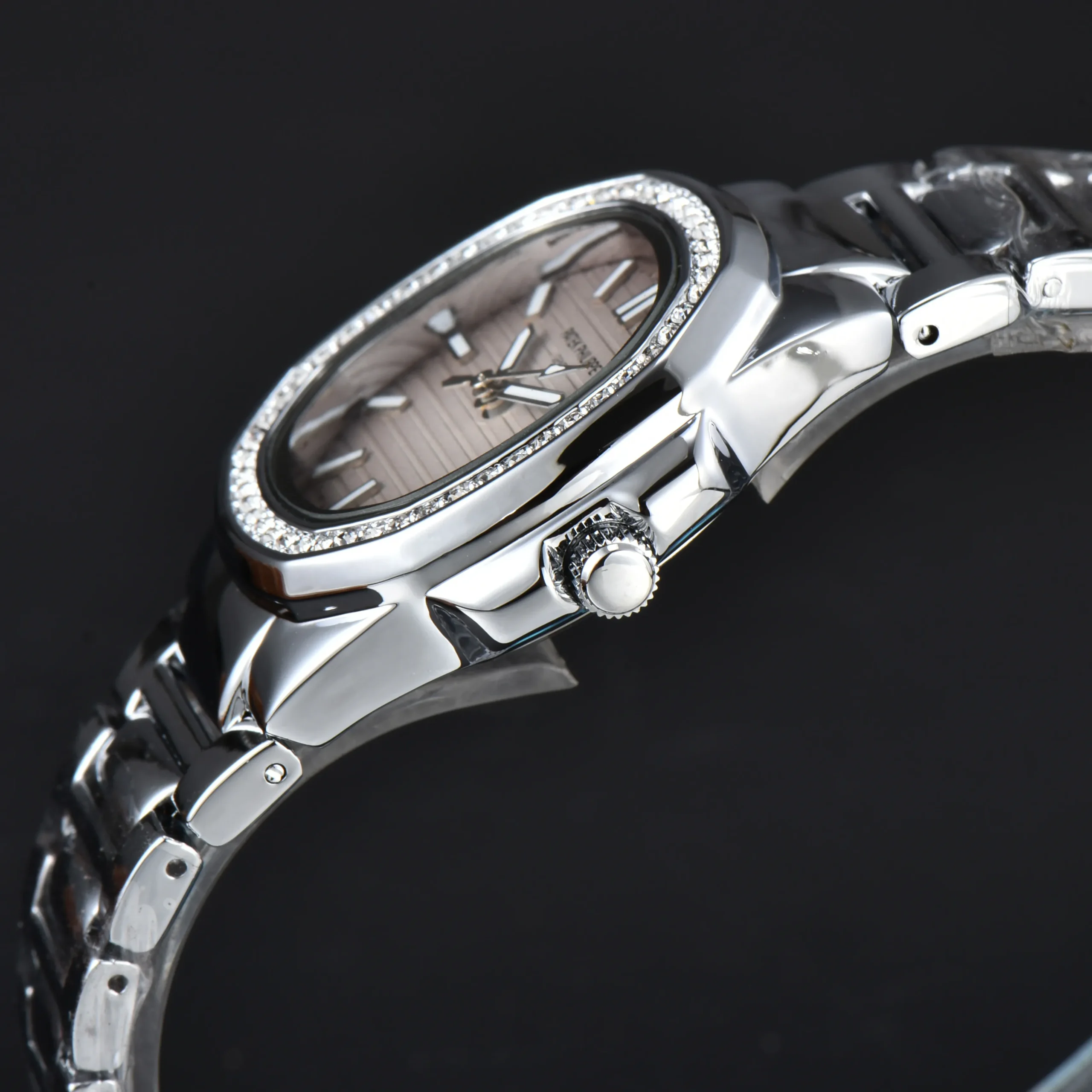 שעון: יוקרתי-נשי בעיצוב אלגנטי ונוצץ.