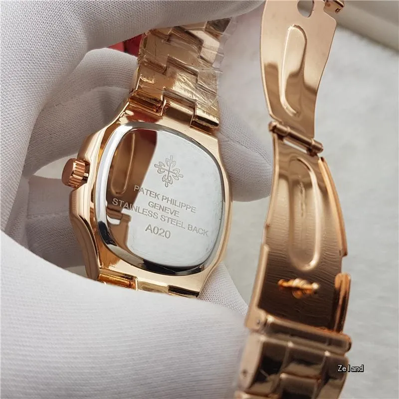רצועה: מתכת רוז גולד אינטגרלית בסגנון נאוטילוס.